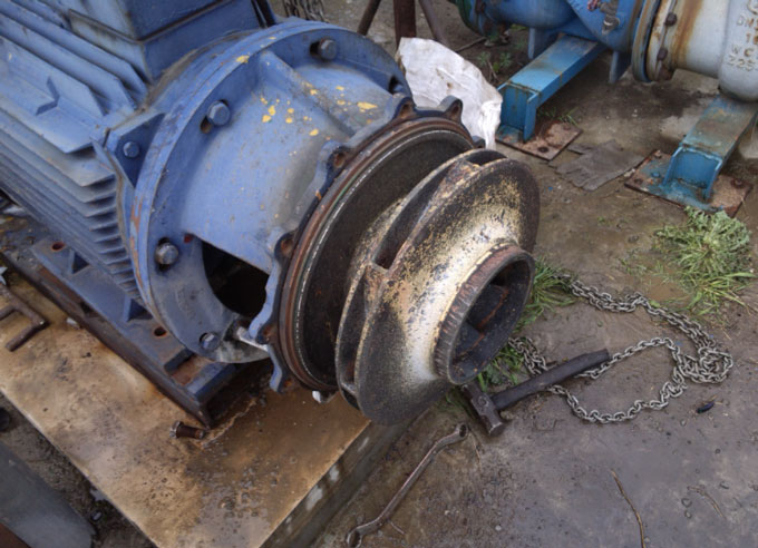 1)在水泵前投入藥物或者水質(zhì)等原因,導(dǎo)致泵殼內(nèi)嚴(yán)重腐蝕或者污垢過多。泵殼內(nèi)污垢過多會導(dǎo)致泵殼壁厚增加2毫米左右,會使泵內(nèi)壁形成垢瘤,導(dǎo)致泵體容積縮小、抽水量減少、流道粗糙、增加水頭損失。水力效率和容積效率都會降低。